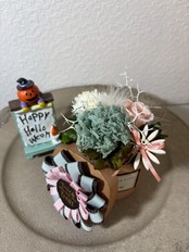 ハロウィンの可愛らしいカラーのアレンジメントです♪